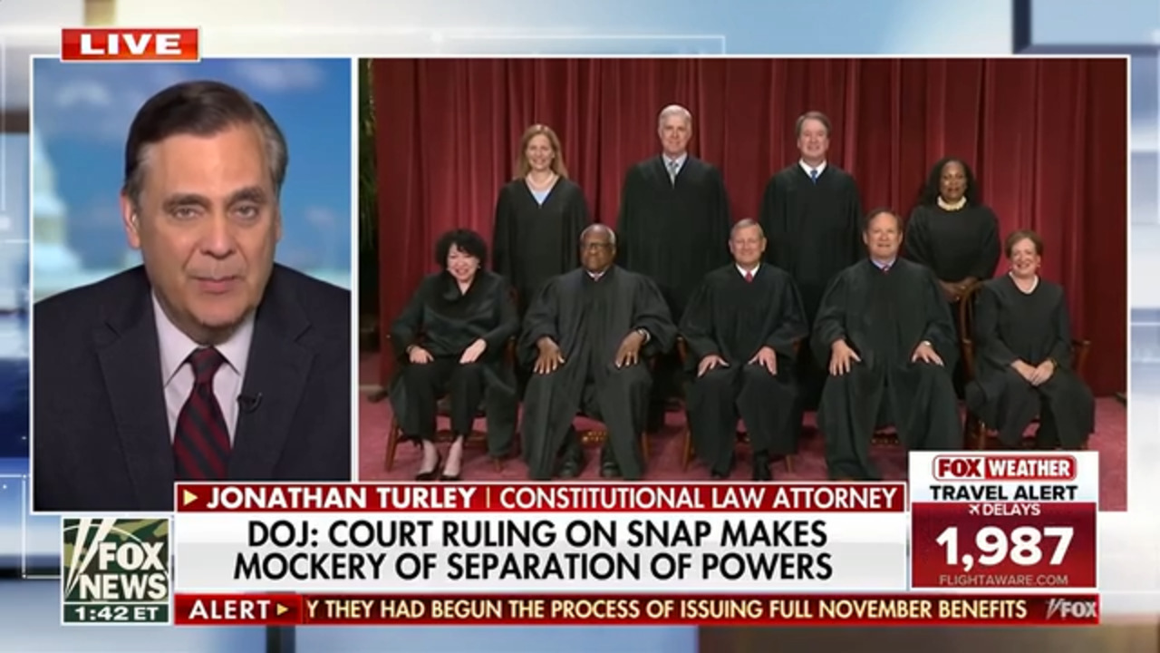 Constitutional law attorney Jonathan Turley discusses the Supreme Court ruling on SNAP payments and weighs in on President Donald Trump’s spending powers on ‘America Reports.’